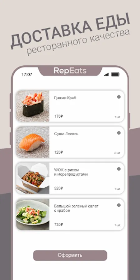 The minimum order amount is 1,000 rubles, you can pay via Apple Pay, credit card or cash.