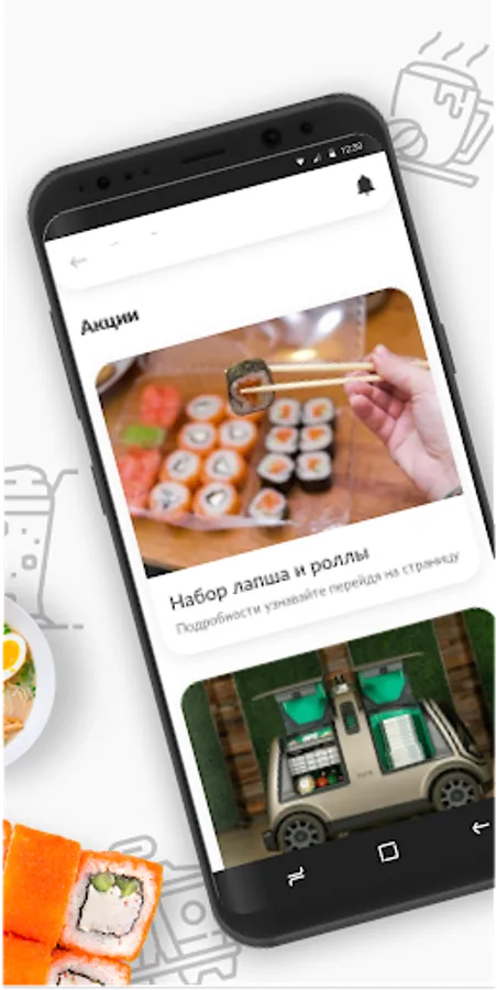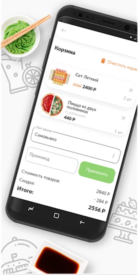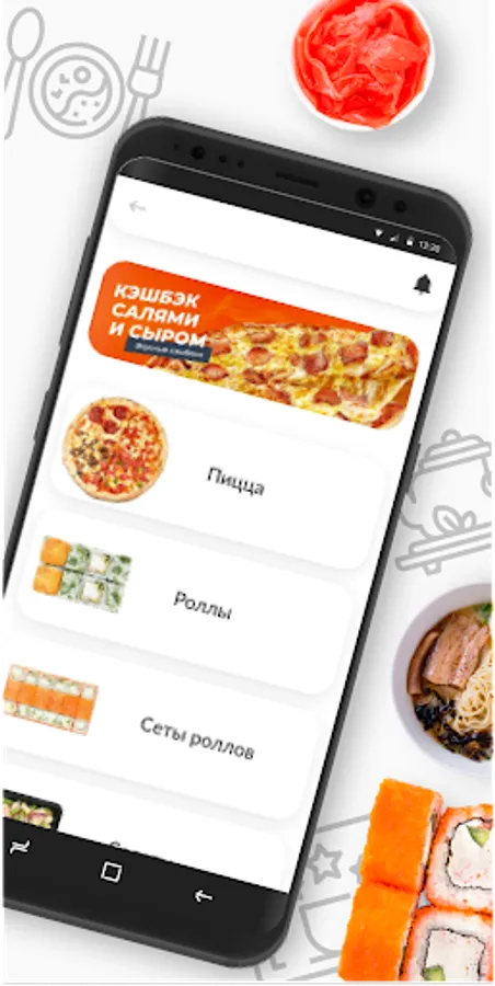 Delivery-shipment of food, sushi, pizza, European cuisine.