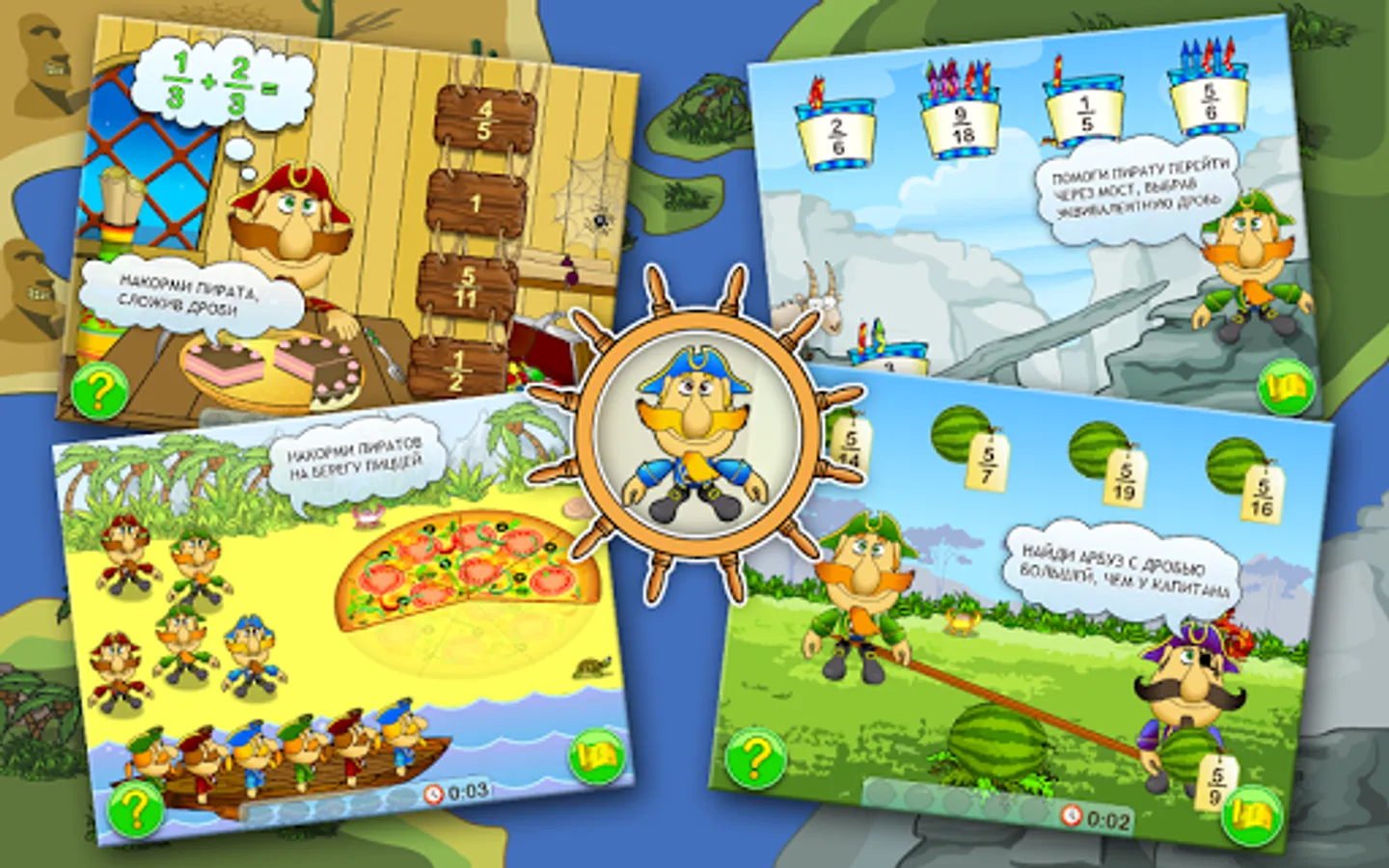 Fractions for kids - fun and easy way to learn fractions with the Caribbean Pirates. Recognizing and Comparing Fractions, Equivalent fractions, Аdding fractions - If you're struggling with fraction problems Fractions. Smart Pirates is your answer.