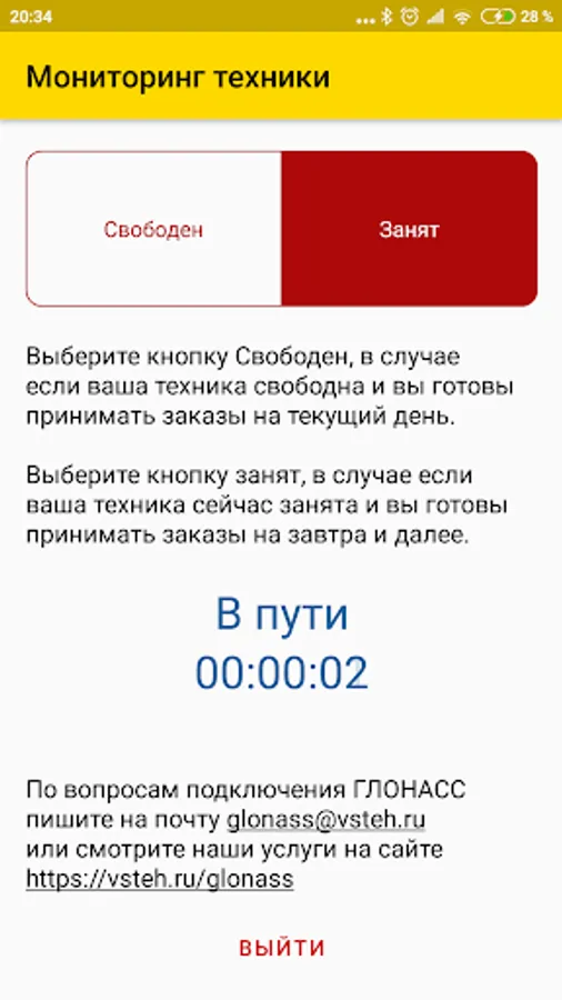 After registering on the site vsteh.ru and adding your car, you can enter this application using the driver’s phone attached to the car.