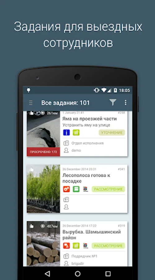 Tasks. Through the program, mobile employees receive assignments. The dispatcher sends tasks and controls how they are completed. Online tasking increases the productivity of mobile groups.