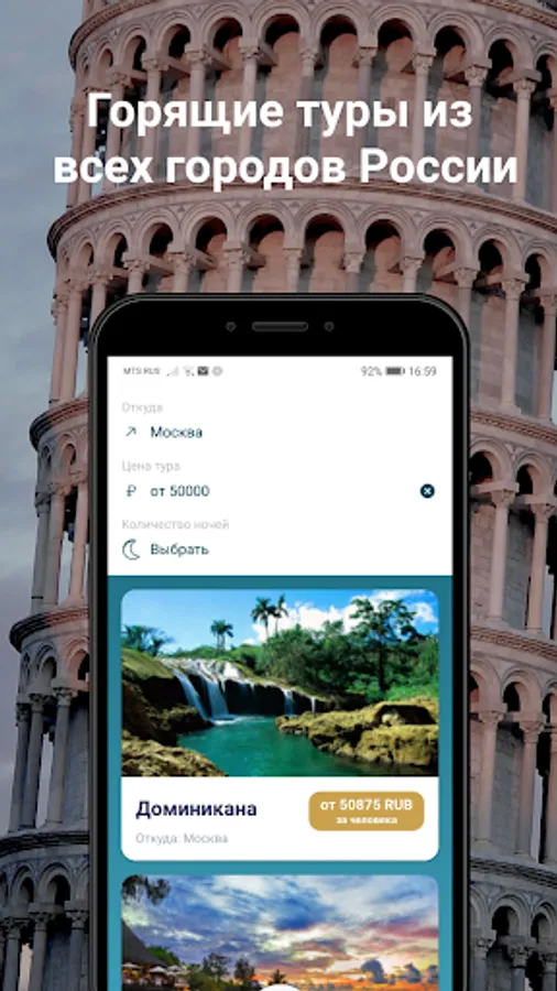 If you have to travel, in this application you can search the most sophisticated hotels with excellent service and a wide range of additional features for an interesting holiday. Here you will find last-minute tours for relaxing on the best beaches in the world. All the options that our search for last-minute tours gives out mean maximum comfort and safety for tourists.