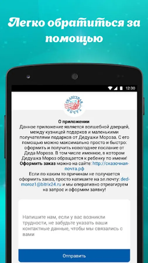By installing the application, "Fairy-mail", you touch the fabulous world - Magic, miracles, and the fulfillment of dreams. Quiet, winter evenings, while the white snow, whirling, falls to the ground, Santa Claus and his helpers prepare gifts and surprises for children!
