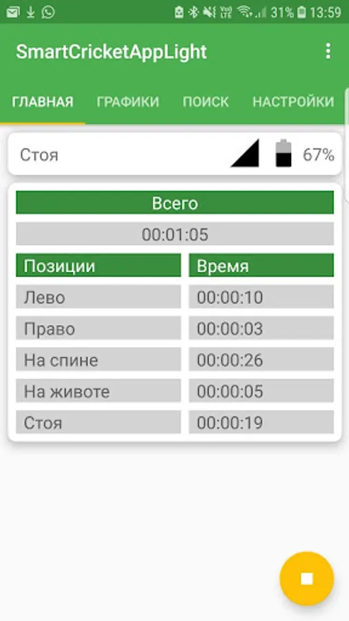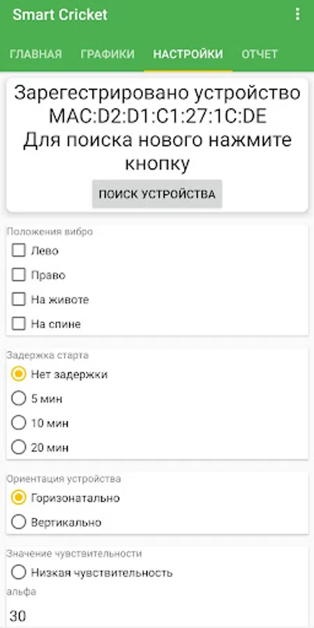 The application, together with the SmartCricket device, allows monitoring of motor activity and the positions of biological objects in space.