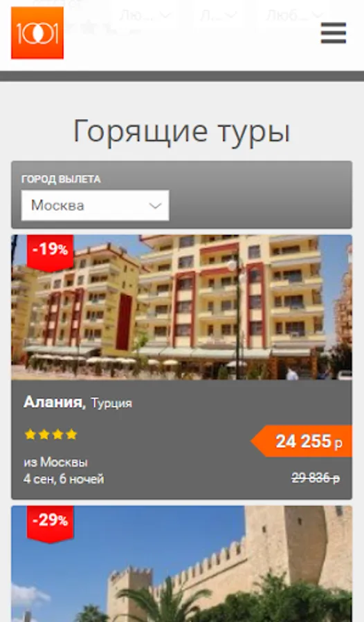 The base of last minute trips to the nearest departure dates to all destinations with discounts and a convenient filter of search parameters is constantly updated. Choose the best burning tour!