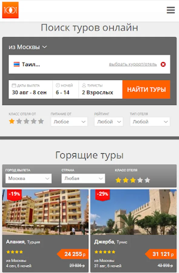 Clear search of tours, a selection of special offers tour operators, convenient filters for the selection of tours.