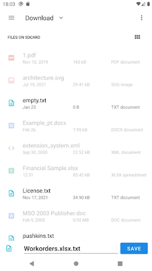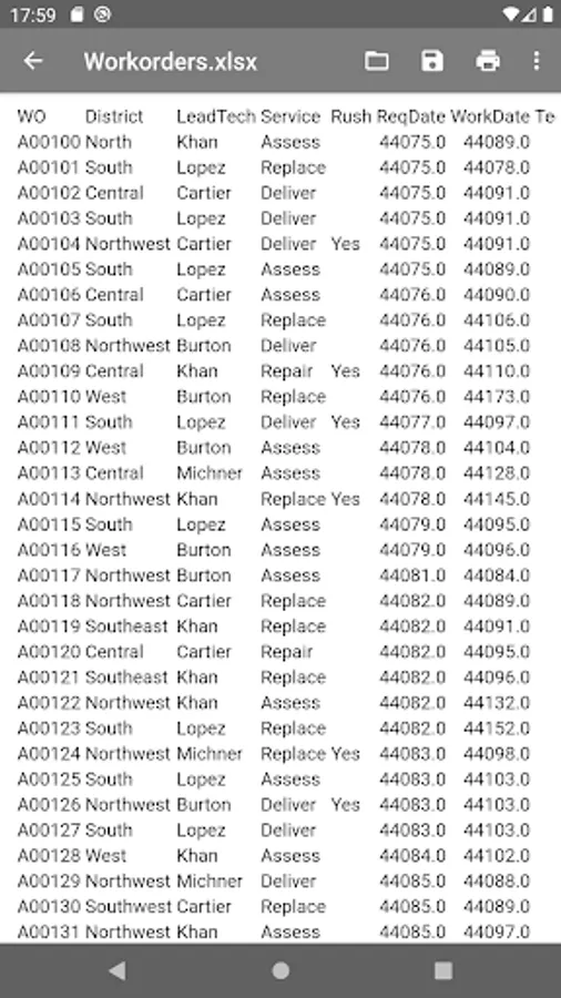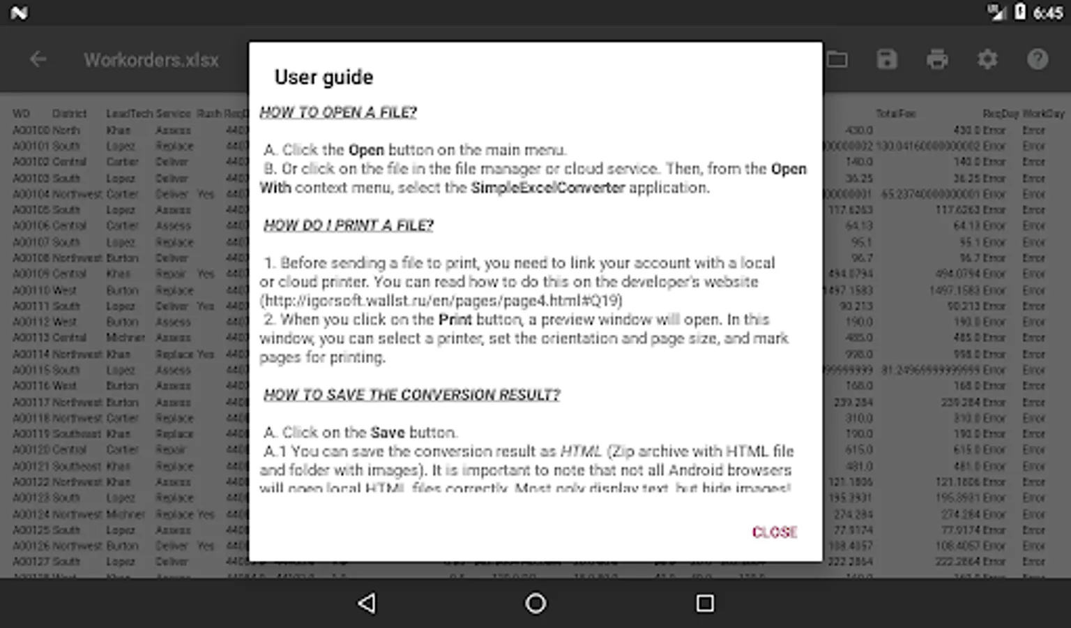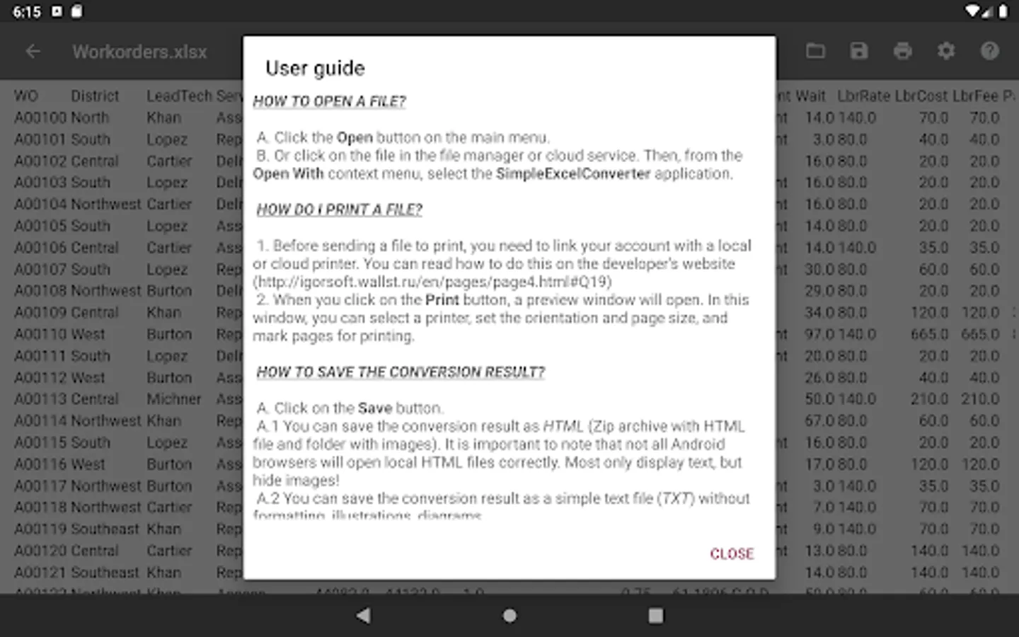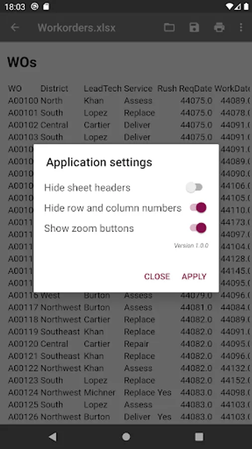 Open an MS Excel document from the main menu of the application or through the context menu of the file manager.