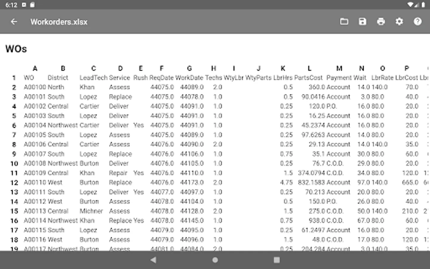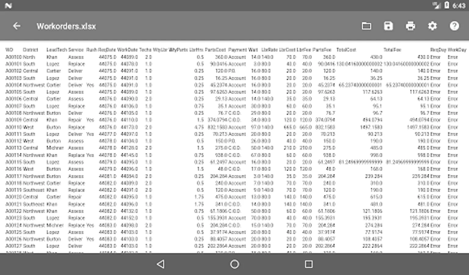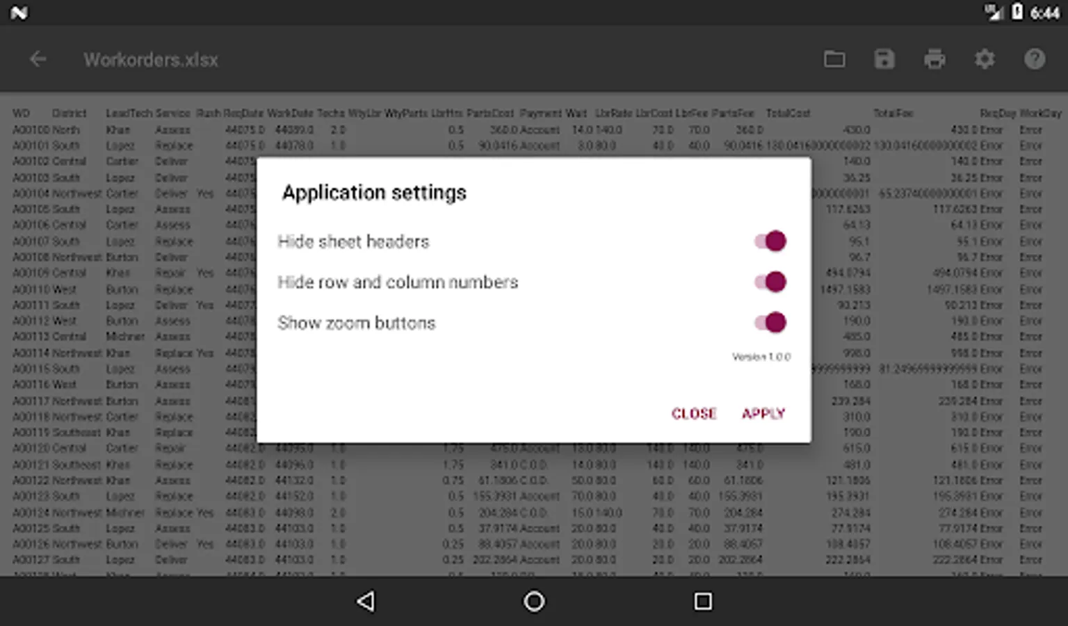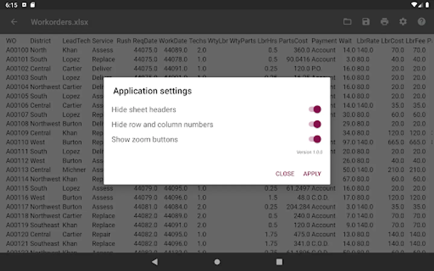 Open an MS Excel document from the main menu of the application or through the context menu of the file manager.