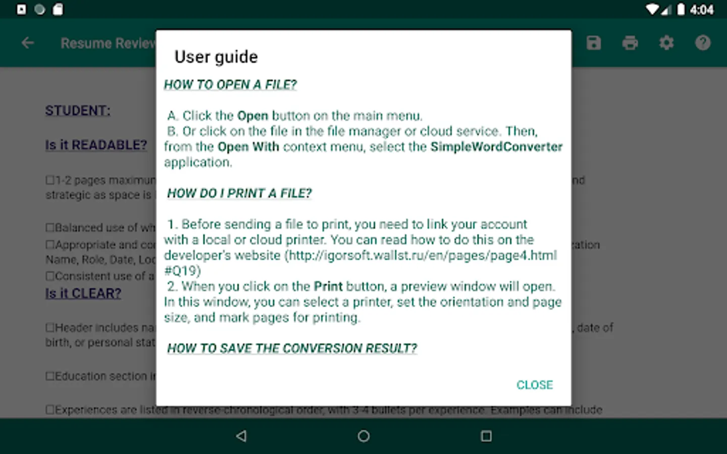 Open the MS Word document from the main application menu or from the file manager context menu.