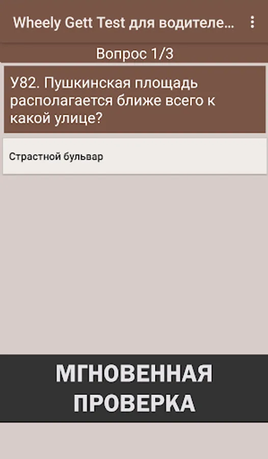 Install and answer. Answer questions for a business taxi at your convenience. In the case of an incorrect answer to the question, you will immediately be shown the correct answer. At the end of the test, choose a mode of working on errors - this increases the effectiveness of training by at least 40%.