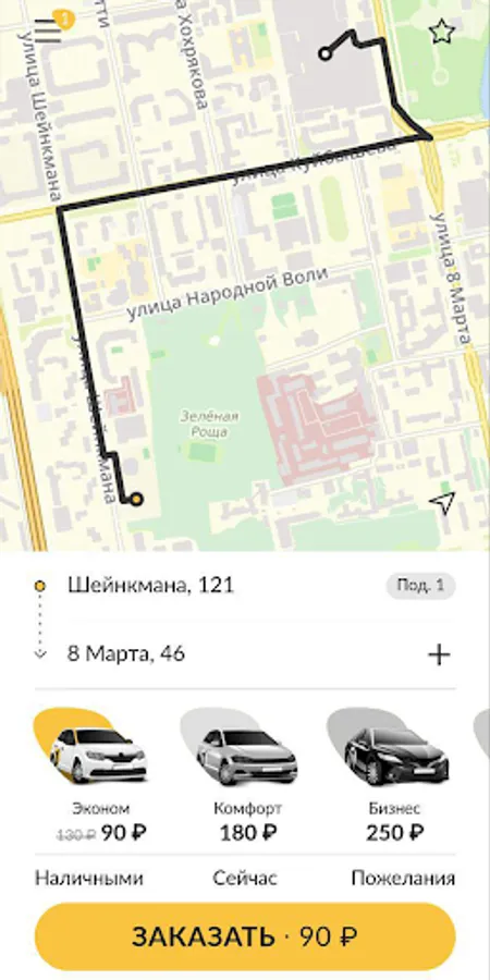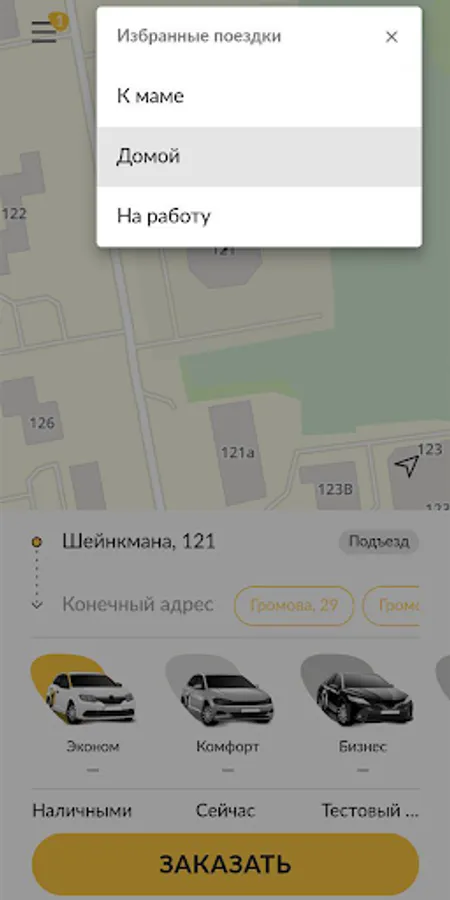 By clicking on the star in the upper right corner, you can add a route to your “Favorites”, and in the future you will never have to enter it manually again - just click on the star and select the desired route. At the same time, even comments for the driver and selected additional services, for example, “Child seat” will be saved.