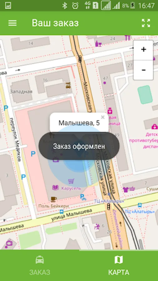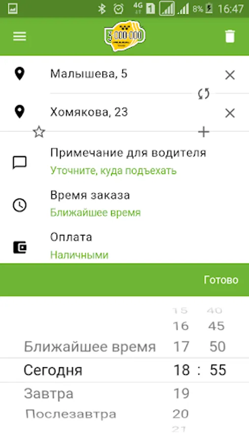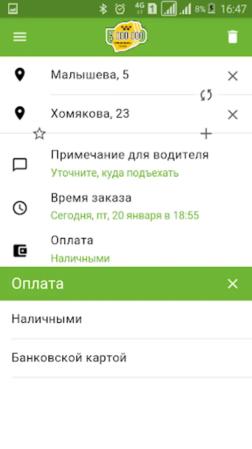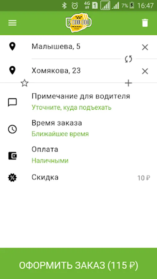 Application for taxi "Lemon Tree" in Yekaterinburg.