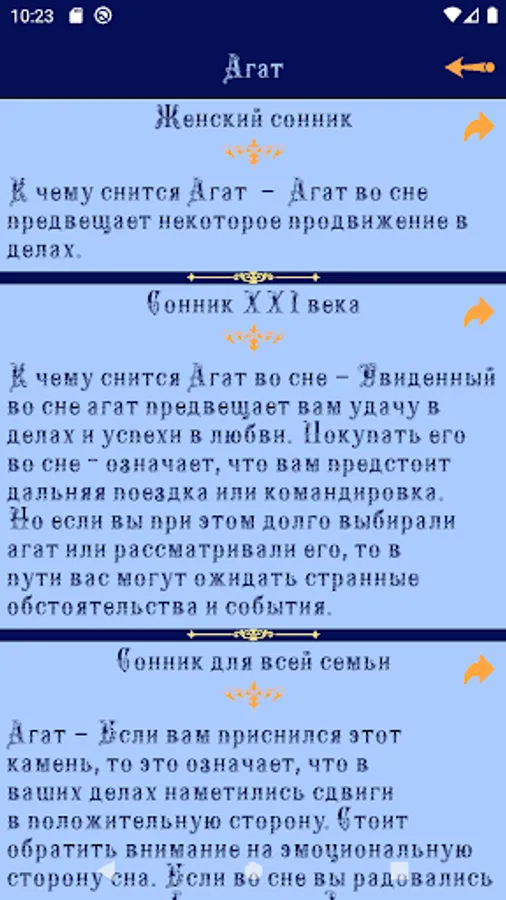 The collection includes such popular dream books as Female, Lunar, Love, Magic, Wangi, For the whole family, Catherine the Great, Miller, Nostradamus, Pythagoras, Tarot, Freud, Feng Shui, Muslim, Psychoanalytic, Islamic, Black magic, Antique, Folklore, Esoteric, Erotic and many others.