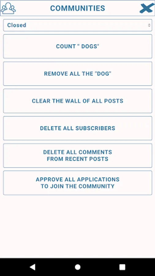 - cleaning the wall of the community from all posts