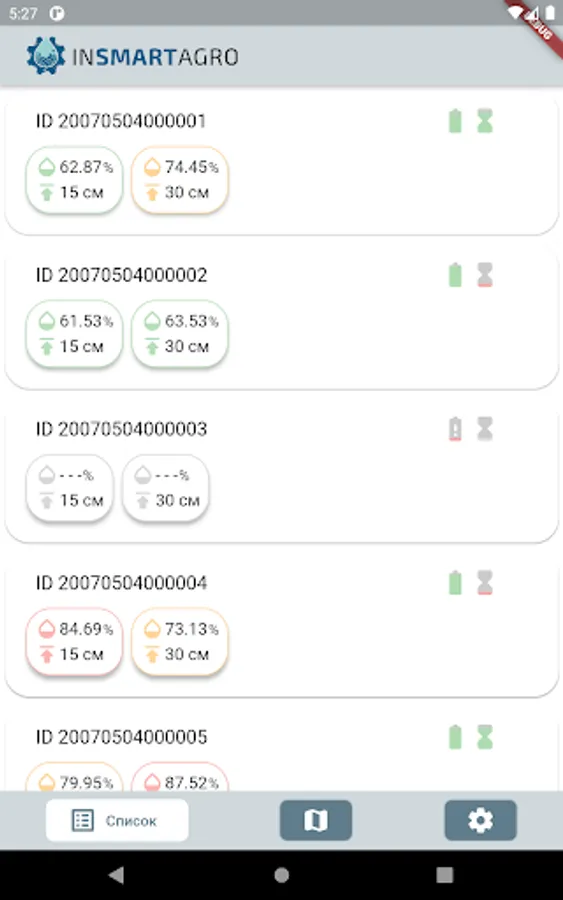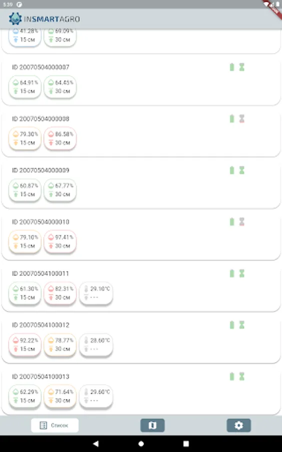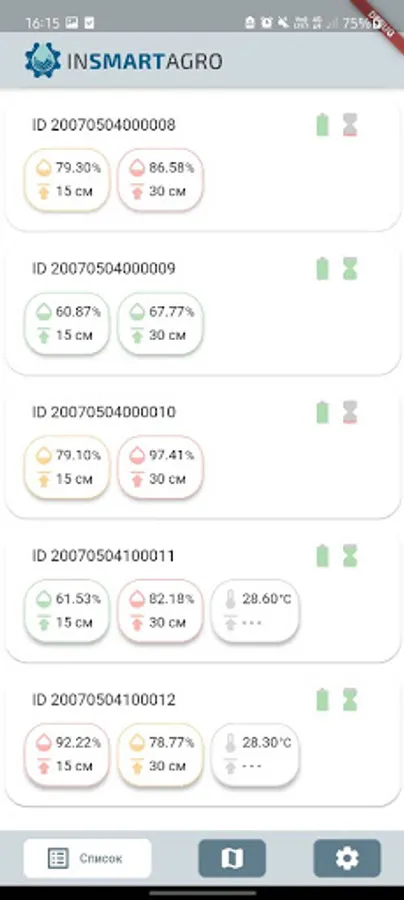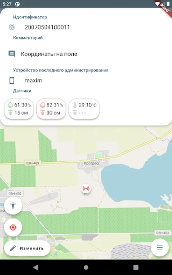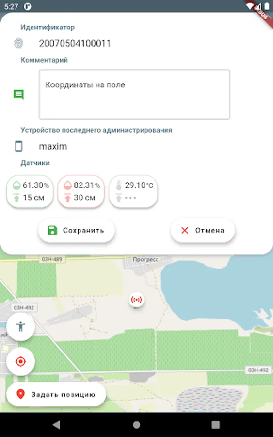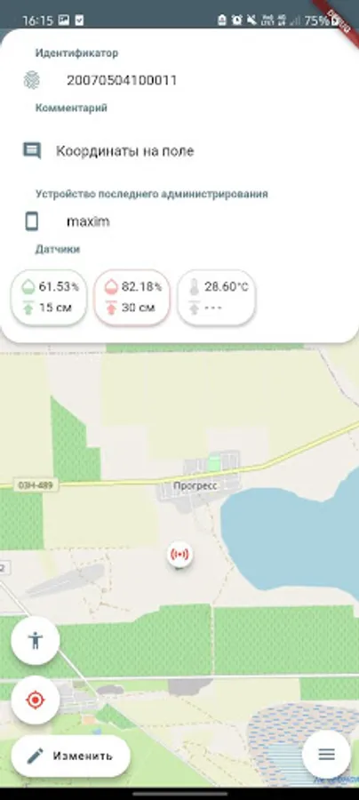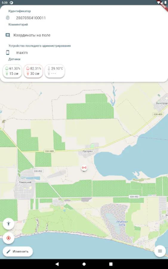 Online fixing of soil moisture and temperature parameters. Possibility of positioning objects with InSmartAgro sensors during installation.