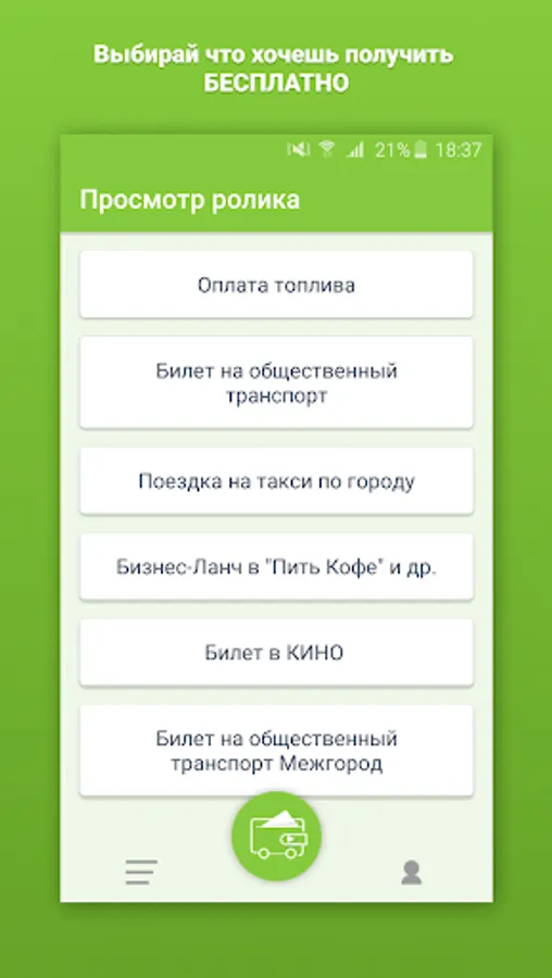 Internet application "Give-Bury" is a unique opportunity for a user to pay for viewing commercials on public transport (on city and intercity routes), traveling by taxi around the city, fuel at gas stations, business lunches in the best restaurants of the city, fines