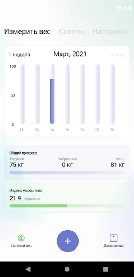 A simple and convenient application where you can track your weight changes. There is no need to create an account in it. Weight control requires data on height, current and desired weight. All data will be formed into a graph. You will be able to evaluate the results for the last week, month or year. The program can calculate your BMI and determine what is the best weight for you. For better weight control, you can upload a photo and leave notes. The app contains tips on proper nutrition and their calories. A beautiful interface and tips will make the process of achieving your goal more enjoyable and easy.