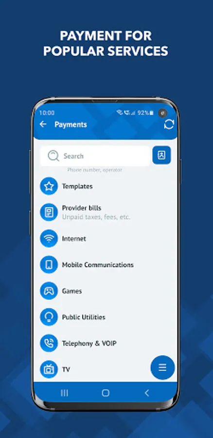 • Conveniently make payments for telephone, the Internet, utilities and many more