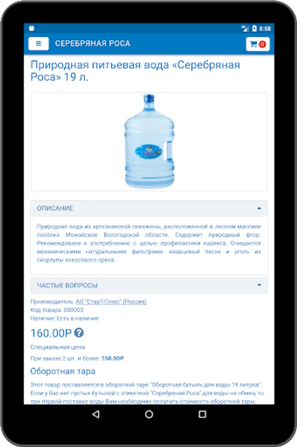 Delivery of water to a house has now become even more accessible, thanks to the possibilities that opens up a mobile application "Silver Dew"! Now you can order the delivery of water to your home or office directly from your mobile device. "Silver Dew" - a bottled water, as well as all the necessary accessories, delivered quickly and accurately, wherever you wish. This application is designed to order water in Moscow, St. Petersburg, Yaroslavl, Vologda, Cherepovets, Rybinsk.