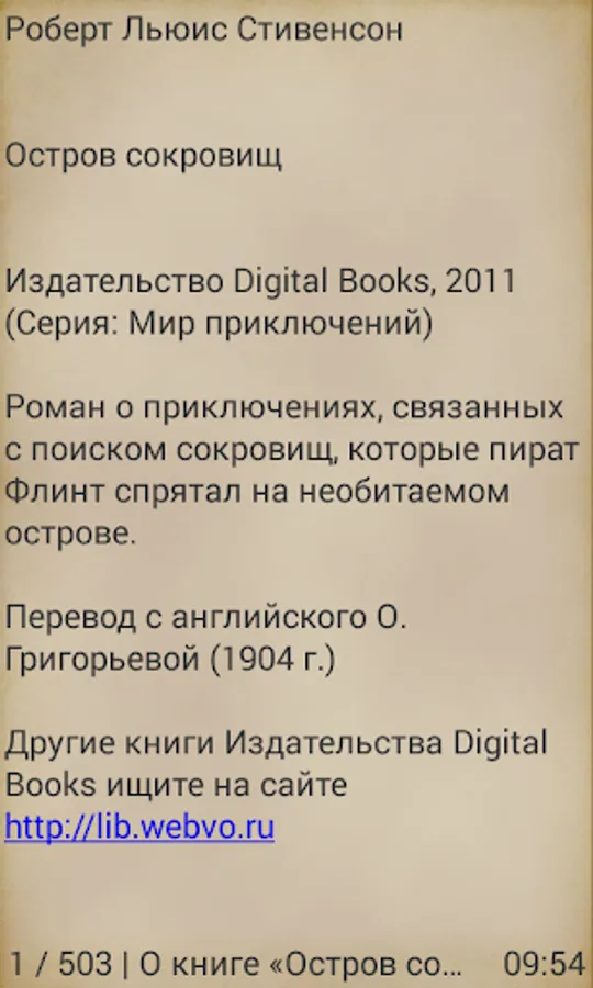 Publisher Digital Books popularizes works of classical literature and support new authors. We produce books in the form of applications for mobile devices based on the Android operating system. For ease of reading in books sold like turning pages in paper editions. With a simple menu every reader can customize the display of books under the specifications of your device.