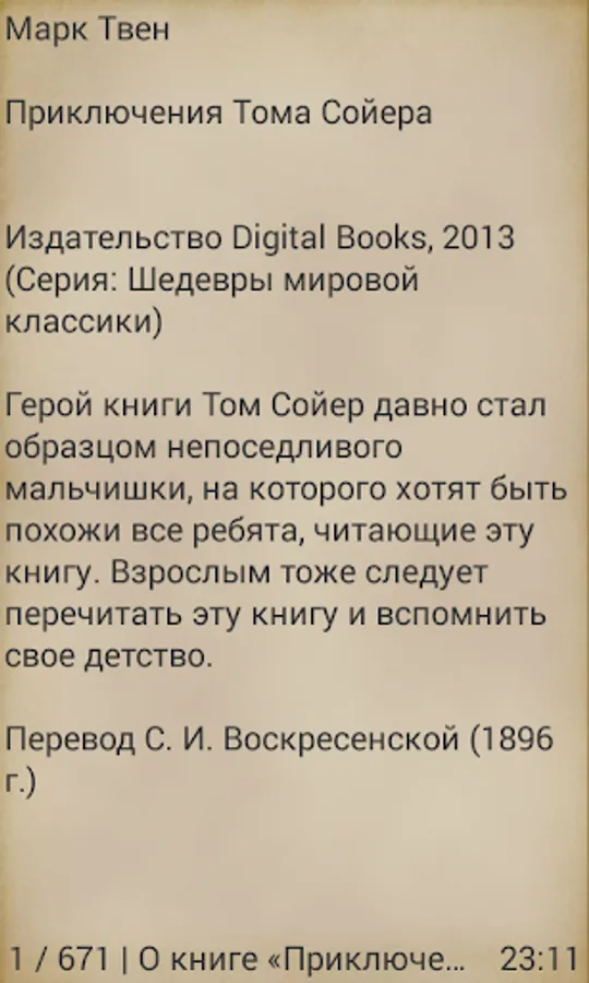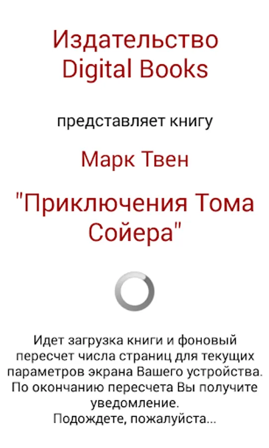 Publisher Digital Books popularizes works of classical literature and support new authors. We produce books in the form of applications for mobile devices based on the Android operating system. With a simple menu every reader can customize the display of books under the specifications of your device.