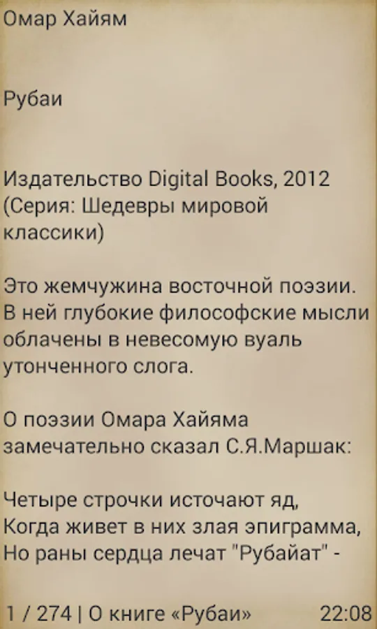 Publisher Digital Books popularizes works of classical literature and support new authors. We produce books in the form of applications for mobile devices based on the Android operating system. With a simple menu every reader can customize the display of books under the specifications of your device.