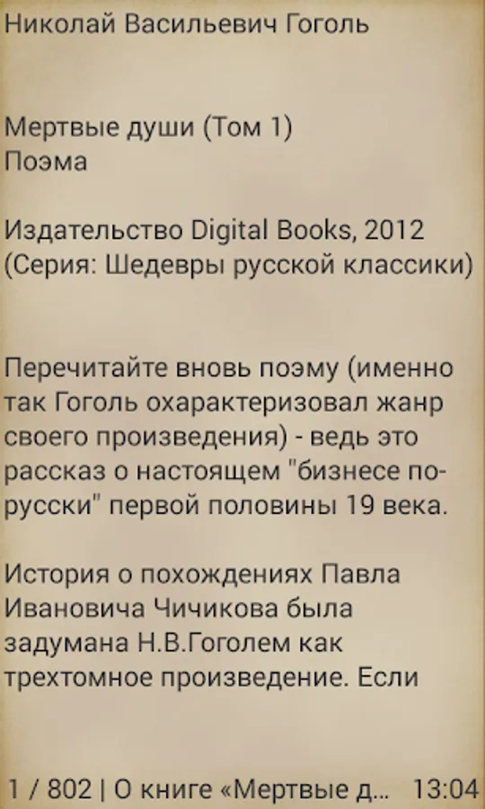 Publisher Digital Books popularizes works of classical literature and support new authors. We produce books in the form of applications for mobile devices based on the Android operating system. With a simple menu every reader can customize the display of books under the specifications of your device.