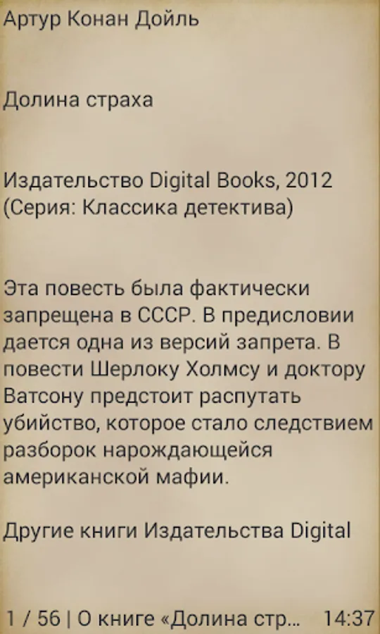 The Digital Books publishing house is engaged in the popularization of works of classical literature and the support of beginning authors. We publish books in the form of applications for mobile devices based on the Android operating system. Using a simple menu, each reader can customize the display of the book to the characteristics of their device.