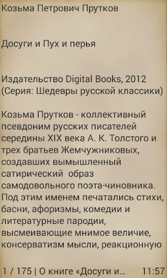 Publisher Digital Books popularizes works of classical literature and support new authors. We produce books in the form of applications for mobile devices based on the Android operating system. With a simple menu every reader can customize the display of books under the specifications of your device.