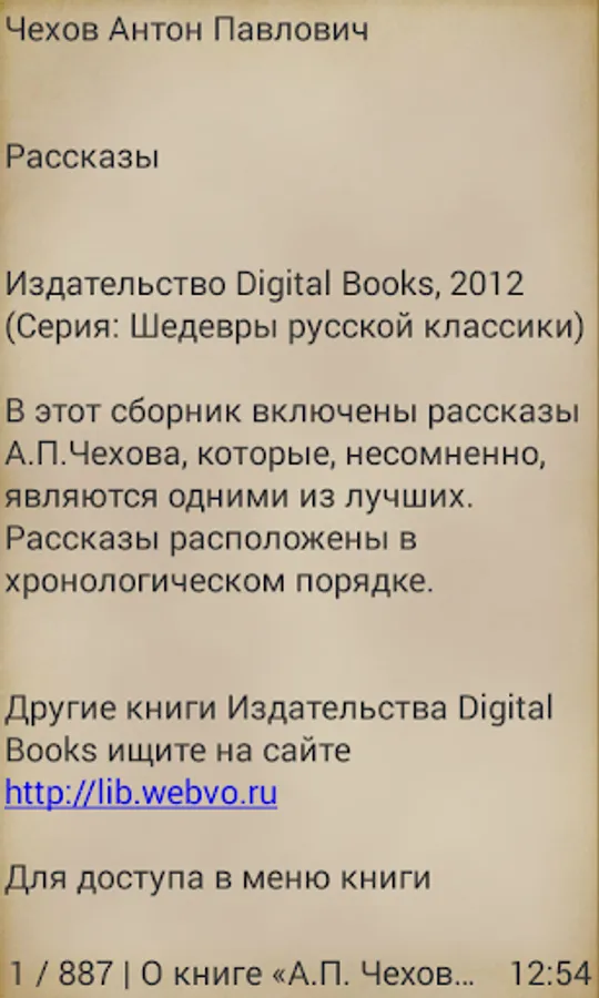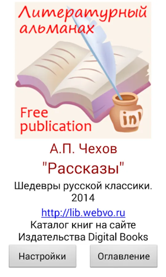 Publisher Digital Books popularizes works of classical literature and support new authors. We produce books in the form of applications for mobile devices based on the Android operating system. With a simple menu every reader can customize the display of books under the specifications of your device.
