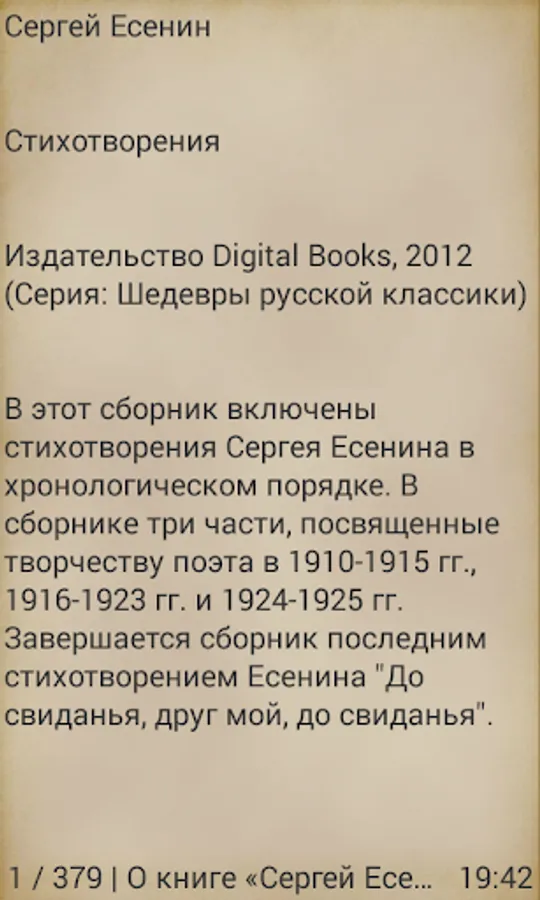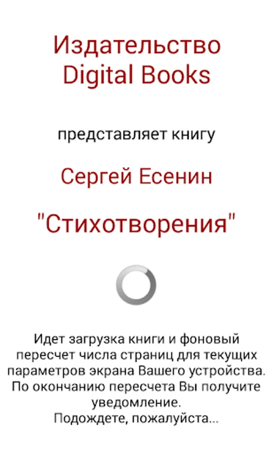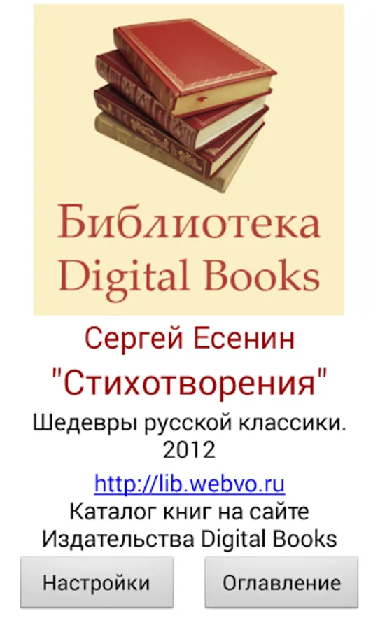 Publisher Digital Books popularizes works of classical literature and support new authors. We produce books in the form of applications for mobile devices based on the Android operating system. With a simple menu every reader can customize the display of books under the specifications of your device.