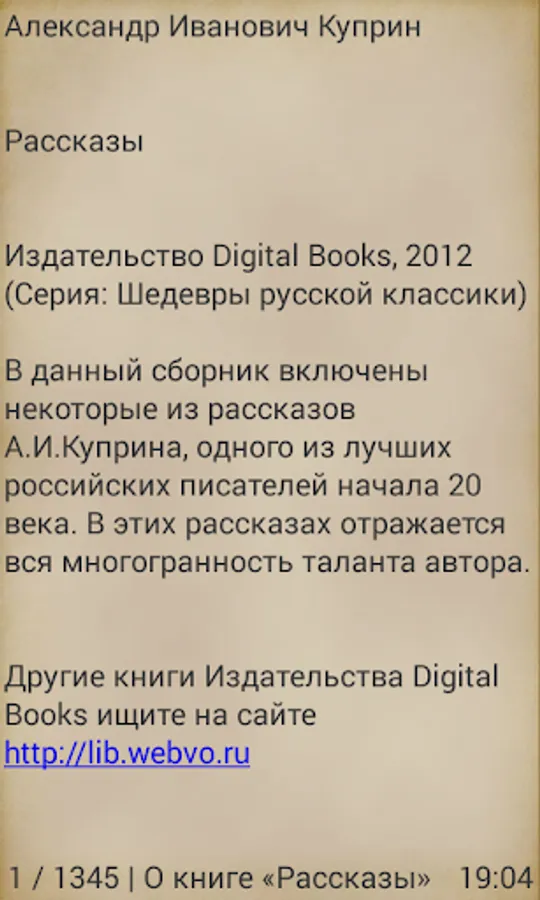 Publisher Digital Books popularizes works of classical literature and support new authors. We produce books in the form of applications for mobile devices based on the Android operating system. With a simple menu every reader can customize the display of books under the specifications of your device.