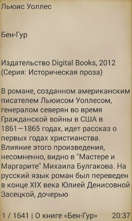 Publisher Digital Books popularizes works of classical literature and support new authors. We produce books in the form of applications for mobile devices based on the Android operating system. With a simple menu every reader can customize the display of books under the specifications of your device.