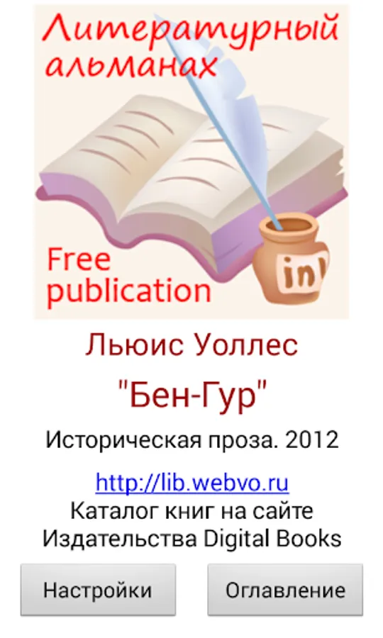 If you are an aspiring writer and would like to see his work in the form of applications for mobile devices based on the Android operating system, please contact the publisher Digital Books (webvo@webvo.ru or webvoru@gmail.com)
