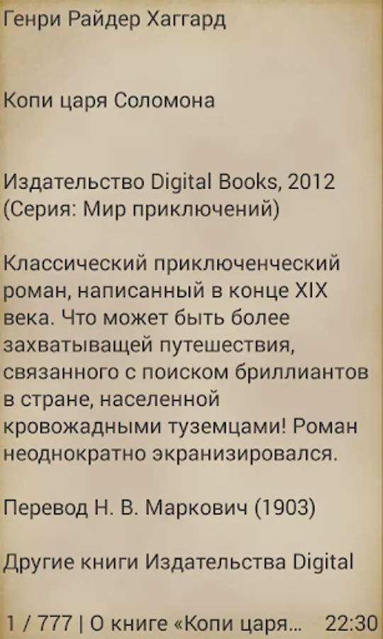 Publisher Digital Books popularizes works of classical literature and support new authors. We produce books in the form of applications for mobile devices based on the Android operating system. With a simple menu every reader can customize the display of books under the specifications of your device.