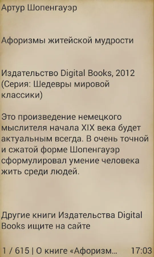 Publisher Digital Books popularizes works of classical literature and support new authors. We produce books in the form of applications for mobile devices based on the Android operating system. With a simple menu every reader can customize the display of books under the specifications of your device.