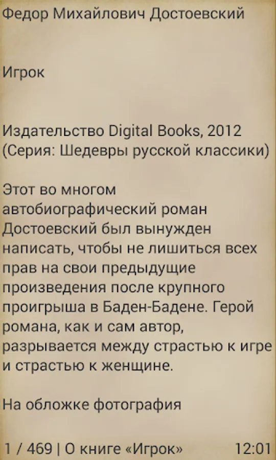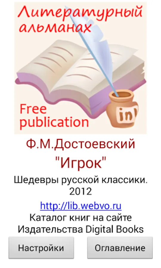 Publisher Digital Books popularizes works of classical literature and support new authors. We produce books in the form of applications for mobile devices based on the Android operating system. With a simple menu every reader can customize the display of books under the specifications of your device.
