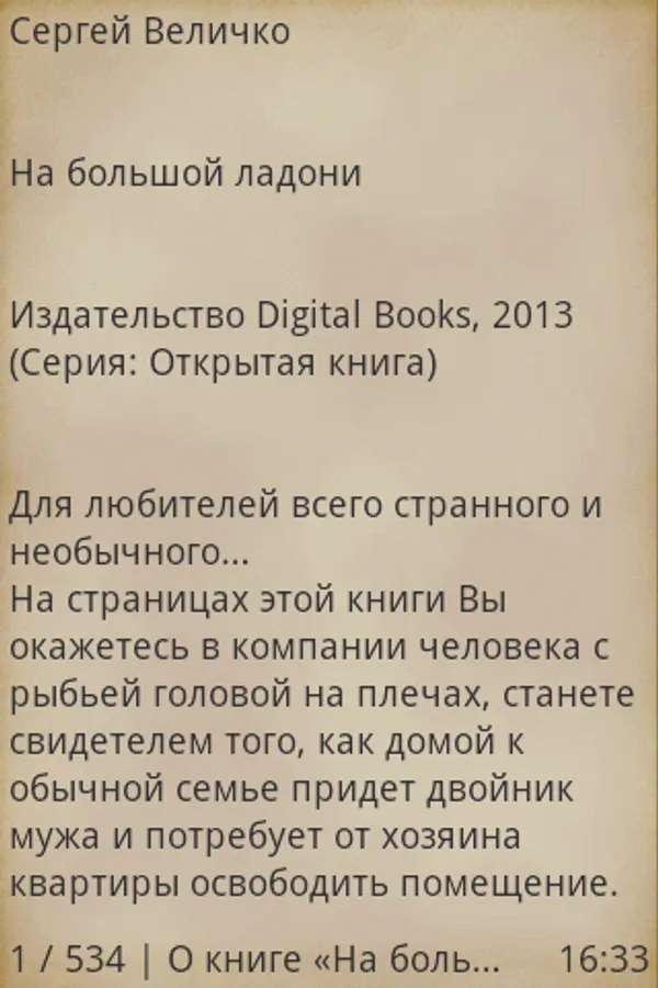 If you are an aspiring writer and would like to see his work in the form of applications for mobile devices based on the Android operating system, please contact the publisher Digital Books (webvo@webvo.ru or webvoru@gmail.com)
