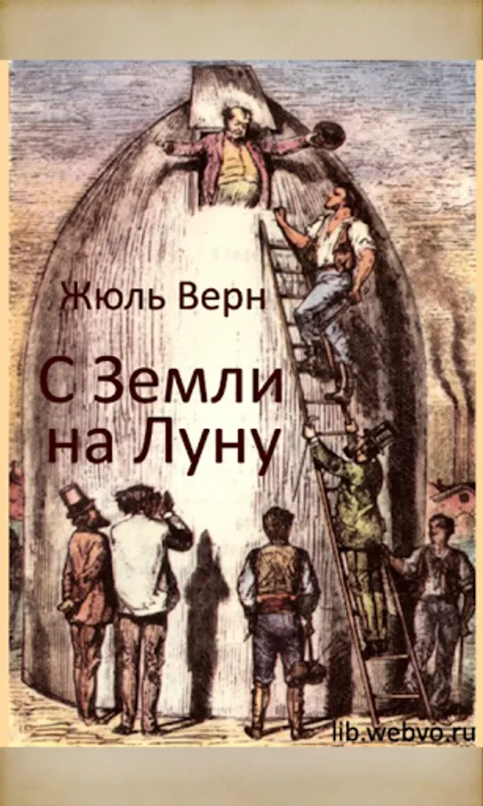 The first part of a fantastic story written in the 19th century and anticipating a man’s flight to the moon. The novel has repeatedly been filmed.
