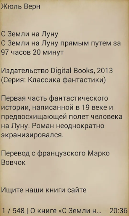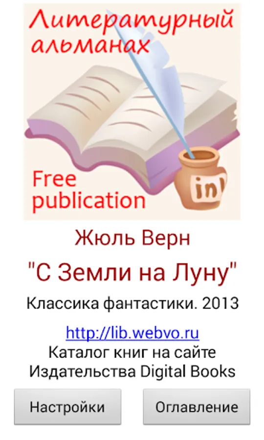 Digital Books publisher is engaged in the popularization of works of classical literature and the support of beginning authors. We release books in the form of applications for mobile devices based on the Android operating system. Using a simple menu, each reader can customize the display of the book under the characteristics of their device.