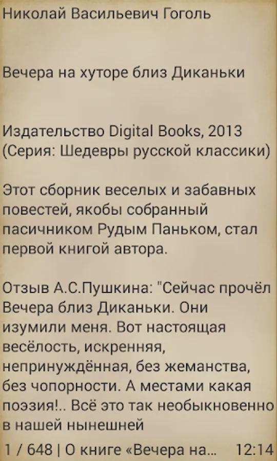 Publisher Digital Books popularizes works of classical literature and support new authors. We produce books in the form of applications for mobile devices based on the Android operating system. With a simple menu every reader can customize the display of books under the specifications of your device.