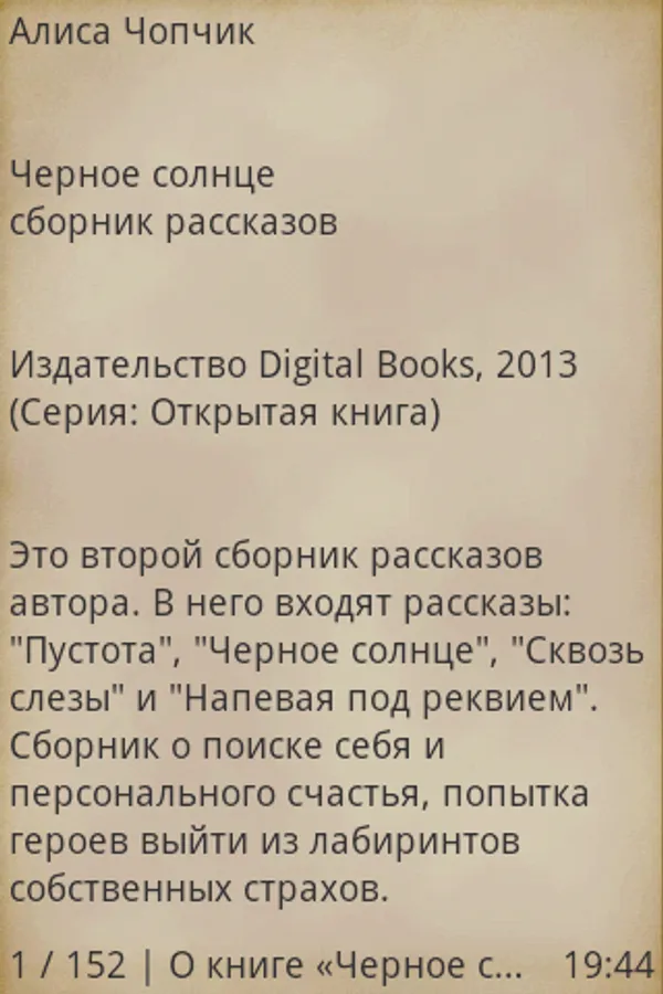 If you are an aspiring writer and would like to see his work in the form of applications for mobile devices based on the Android operating system, please contact the publisher Digital Books (webvo@webvo.ru or webvoru@gmail.com)