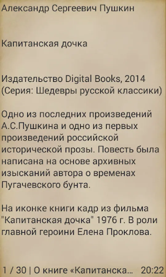 Publisher Digital Books popularizes works of classical literature and support new authors. We produce books in the form of applications for mobile devices based on the Android operating system. a simple menu every reader can customize the display of books under the specifications of your device.