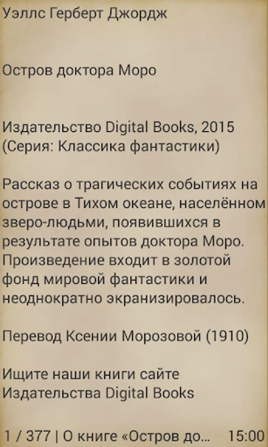 Publisher Digital Books popularizes works of classical literature and support new authors. We produce books in the form of applications for mobile devices based on the Android operating system. With a simple menu every reader can customize the display of books under the specifications of your device.