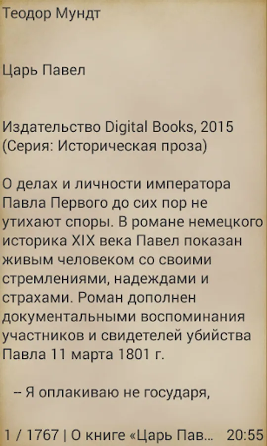 Publisher Digital Books popularizes works of classical literature and support new authors. We produce books in the form of applications for mobile devices based on the Android operating system. With a simple menu every reader can customize the display of books under the specifications of your device.
