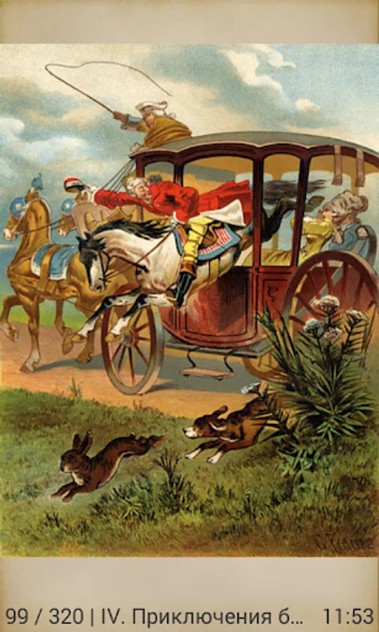 Amazing journey of Baron Munchausen on the water and on land, hiking and fun adventure, he used to tell them a bottle of wine in a circle of friends.