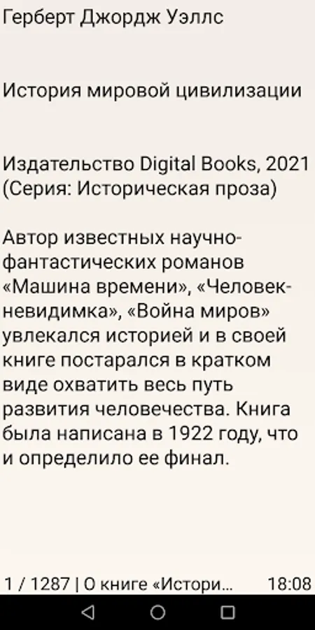 Digital Books is dedicated to popularizing classical literature and supporting aspiring authors. We publish books as applications for mobile devices based on the Android operating system. Using a simple menu, each reader can customize the display of the book to the characteristics of his device.
