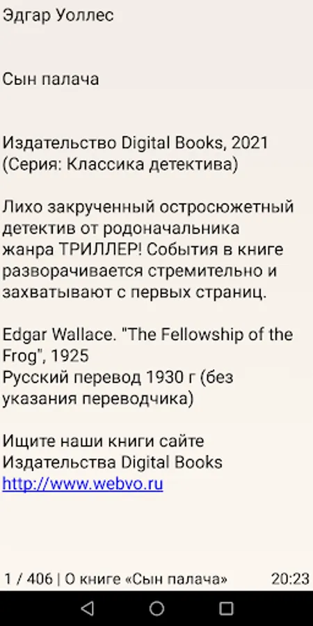 Digital Books is dedicated to popularizing classical literature and supporting aspiring authors. We publish books in the form of applications for mobile devices based on the Android operating system. With the help of a simple menu, each reader can customize the display of the book to the characteristics of his device.