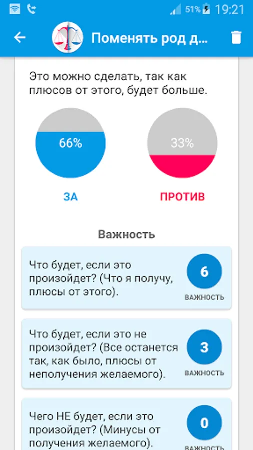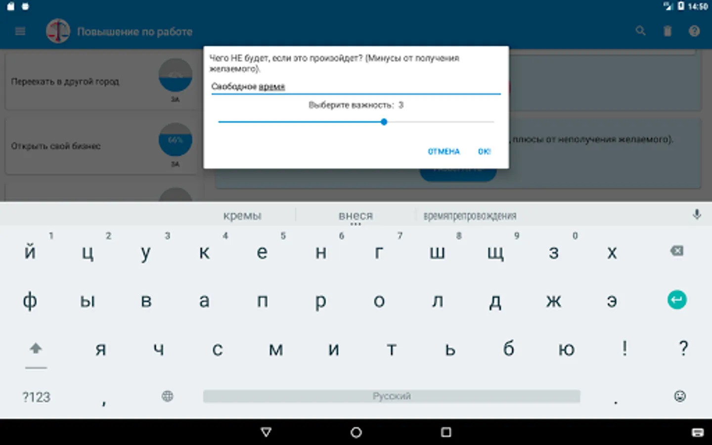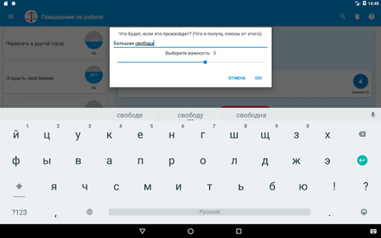Application for Android "How to Decide" - A square of Descartes as a technique to make decisions is extremely simple, which requires for its use a very small amount of time. With the help of Descartes' Square easily set the most important selection criteria, as well as to evaluate the effect of any options to make decisions.