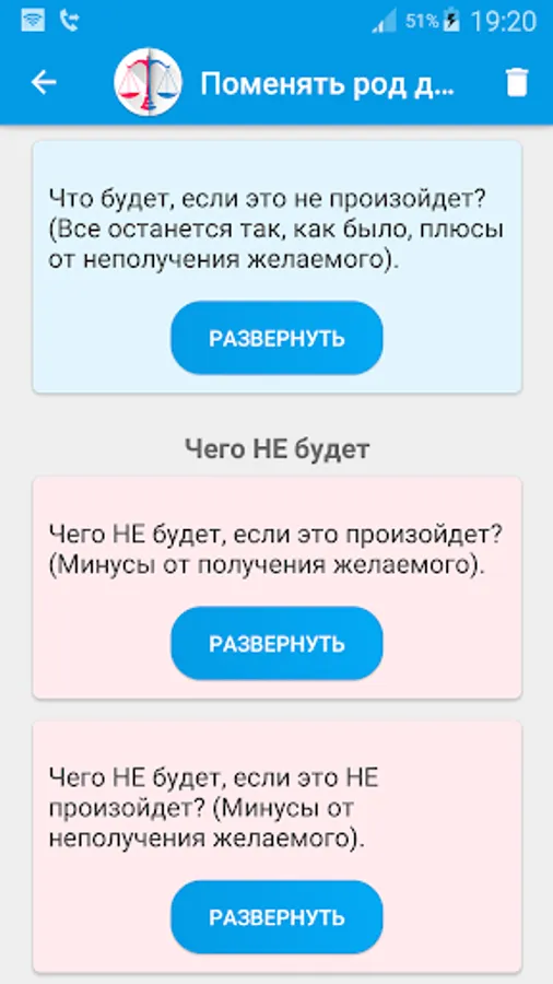 What will happen if it does not happen? (Cons not received from the desired). With this question, be careful, because the brain wants to ignore the double negative. And the answer may be similar to the answer to the first question. Do not allow this.